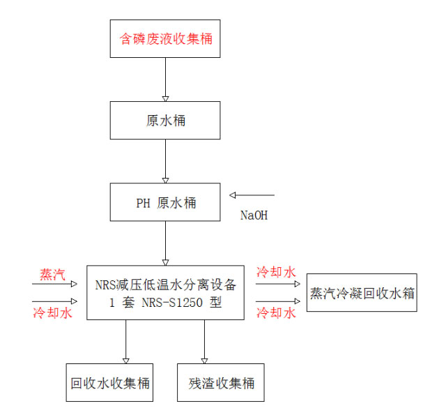 在生產金屬制品中會產生高濃度的含磷廢液。含磷廢液的產量每天約 20T,此種類含磷廢液含酸物質較高,以傳統(tǒng)的工藝去除難以達到環(huán)保要求,且處理成本高、效果差,不能達標排放。
